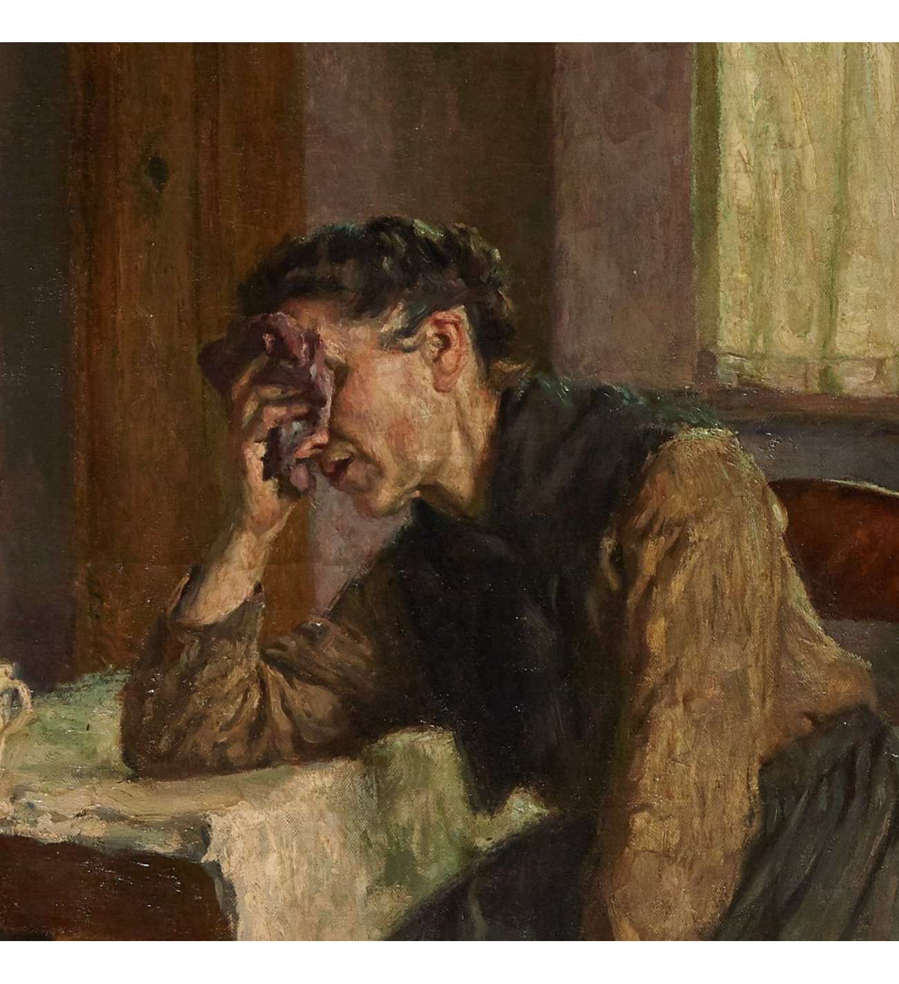 Mater Dolorosa is part of a series of paintings which Leo Van Aken developed around the theme of suffering. It was conceived around the same time Leo Van Aken painted "Human Misery", which was acquired by the city of Barcelona and which is now part of the collection of the Museum of Catalonia.