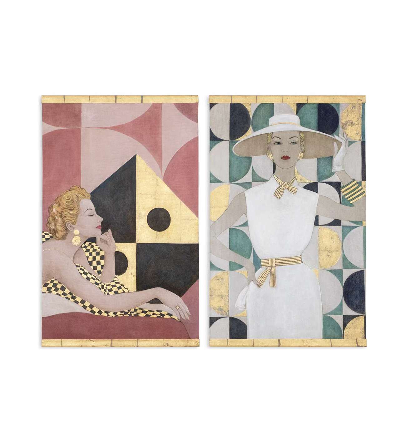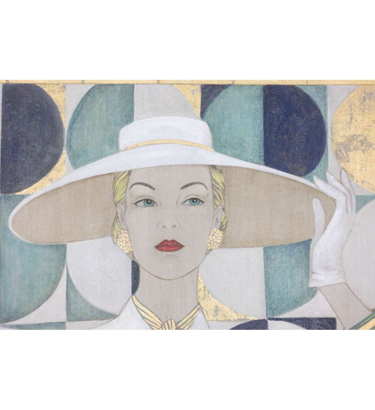 Painted canvas, or decorative panel, representing an elegant painting in the style of the 1950s.