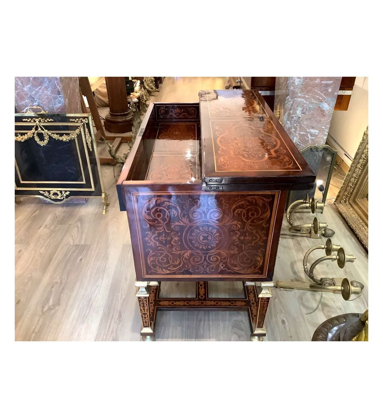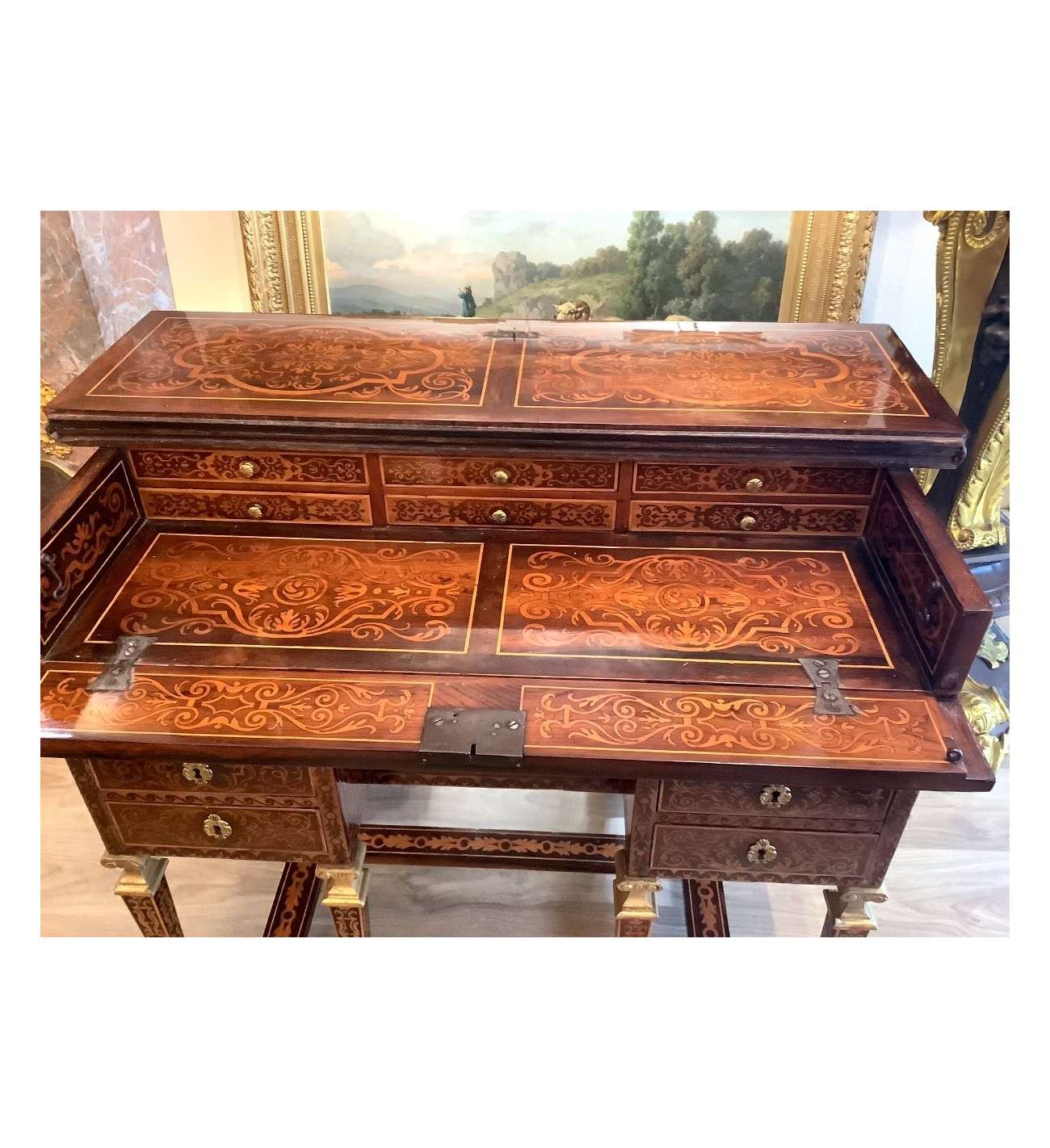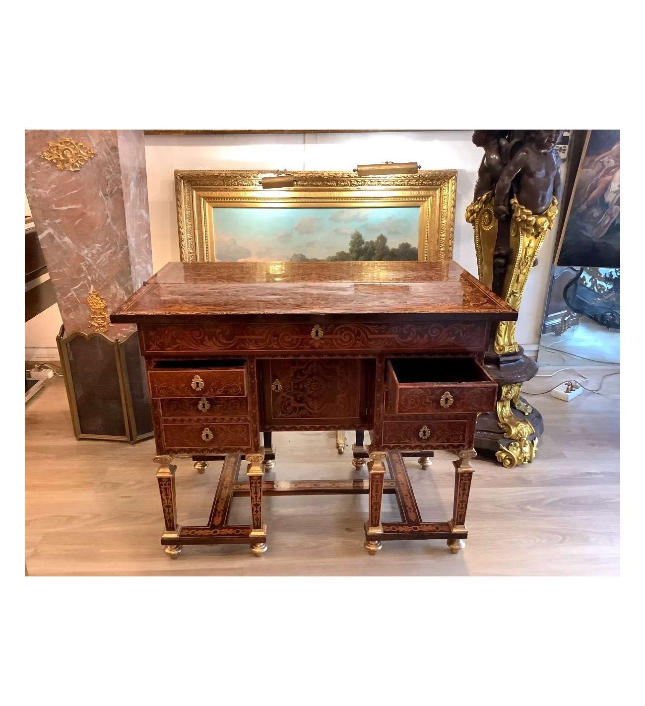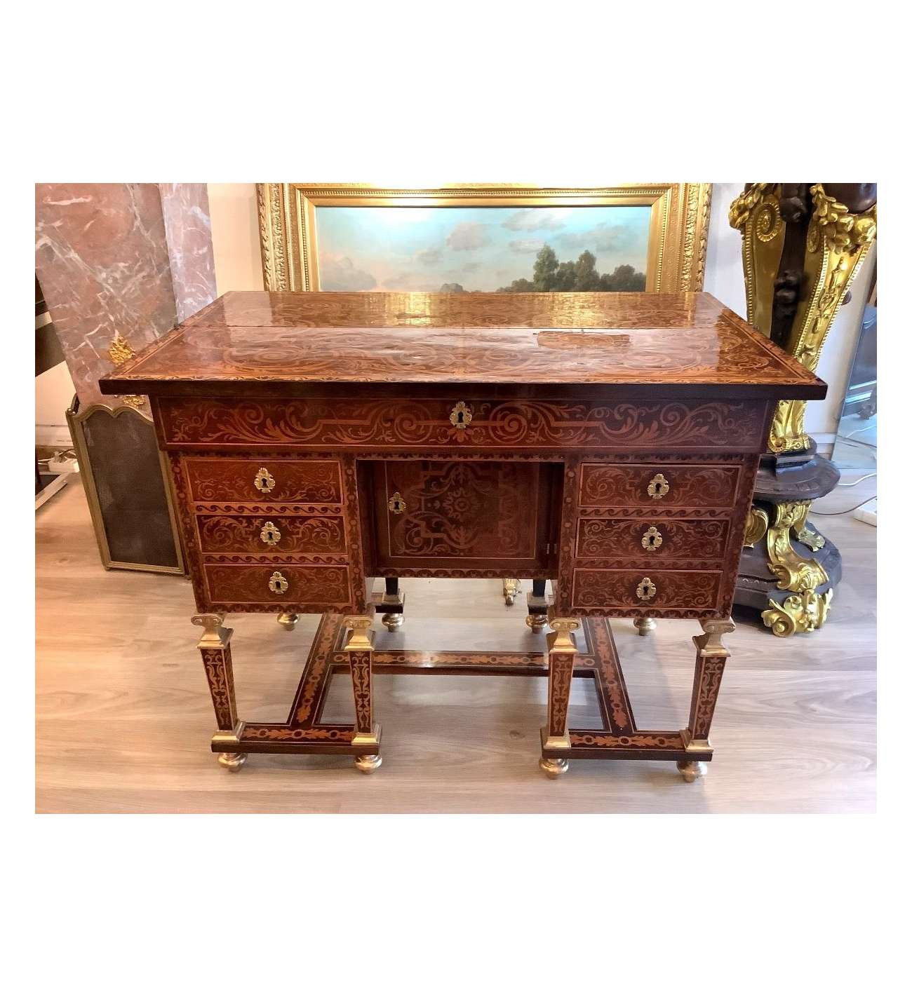 Superbe bureau MAZARIN d époque 2 eme moitié du 17 eme siècle à décor complet de marqueterie de palissandre et sycomore façon marqueterie de Boule et encadrement de palissandre , en parfait état avec tiroir .travail parisien .