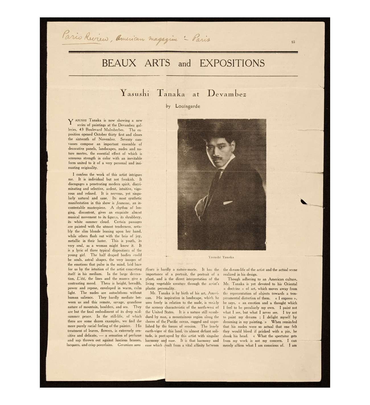 Yasushi Tanaka né au Japon en 1886. En 1904, il s’installe à New York et se forme à la Broadway High School. Apprécié et reconnu, il expose au musée de Washington en 1912.