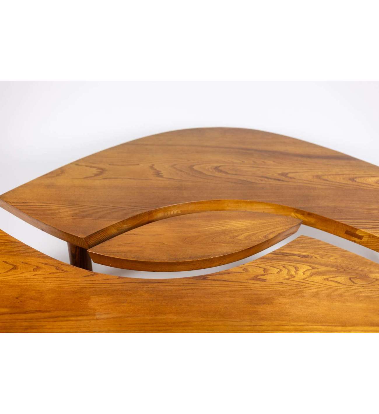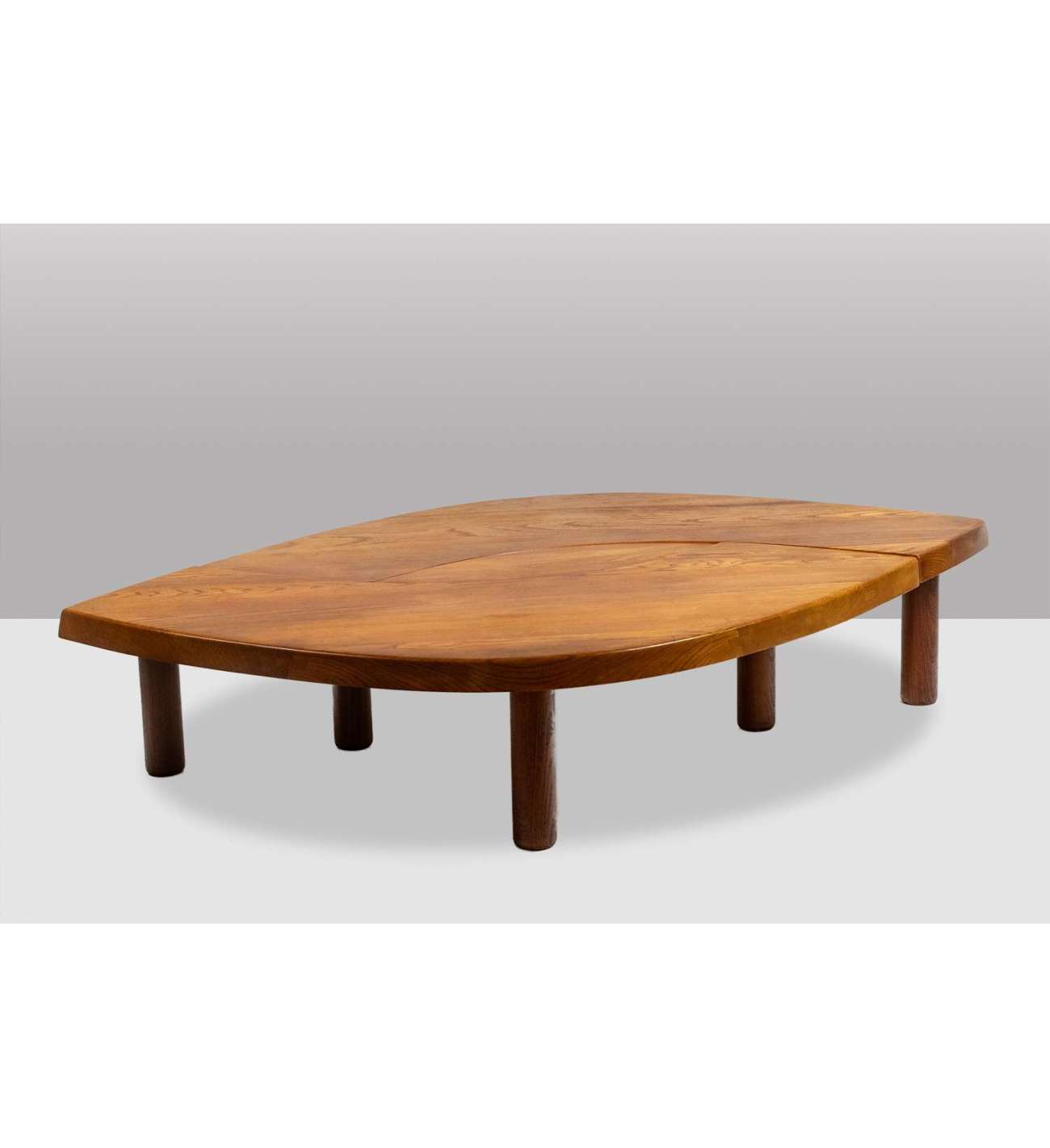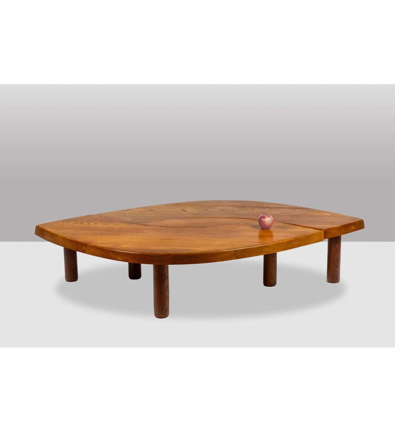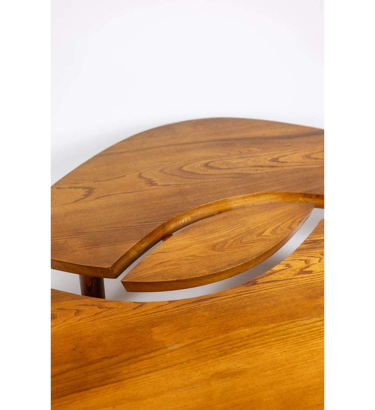 Table basse modèle « T22 C » en orme massif blond et de forme oeil.