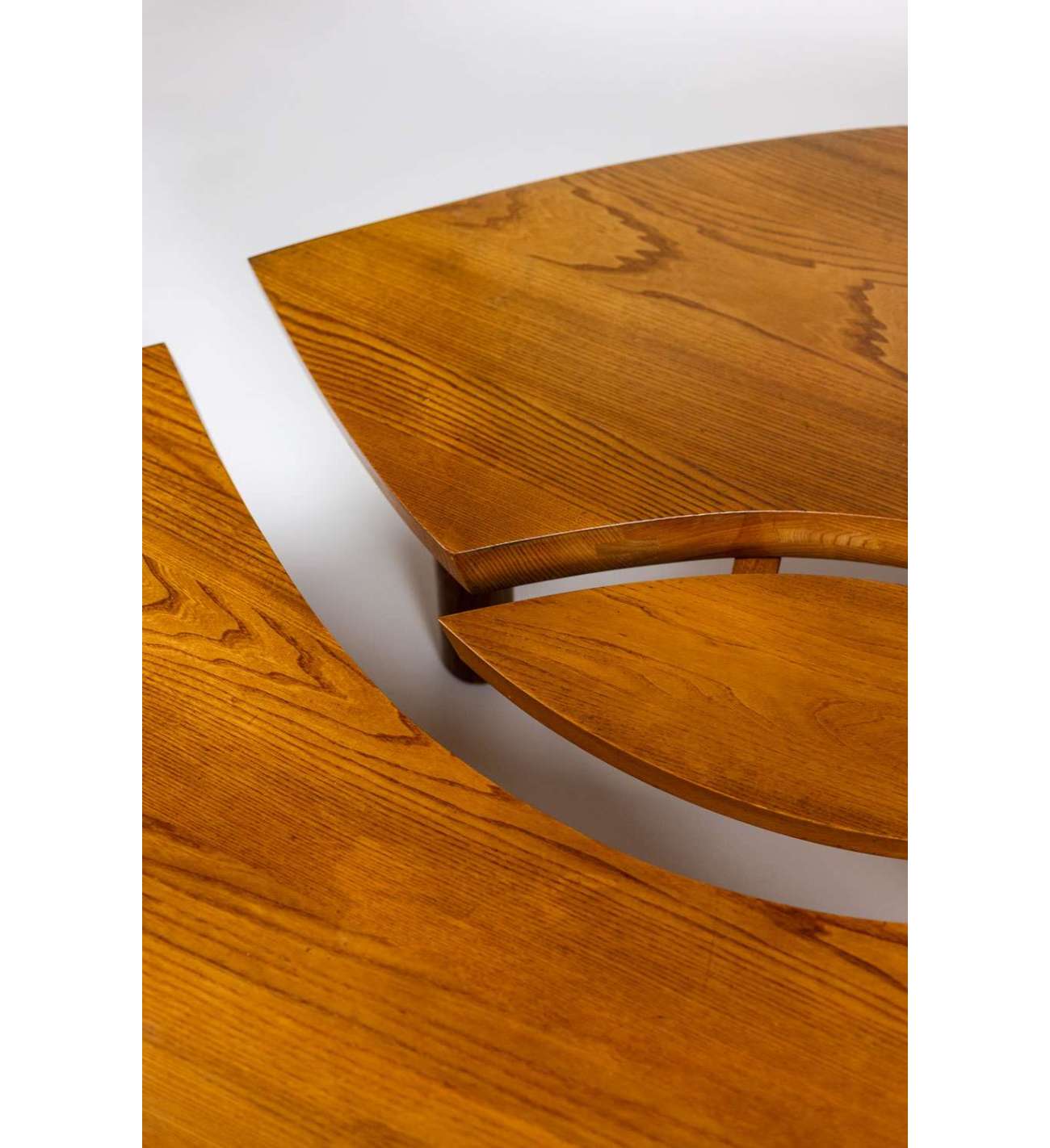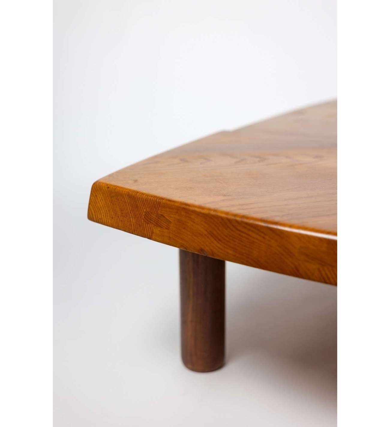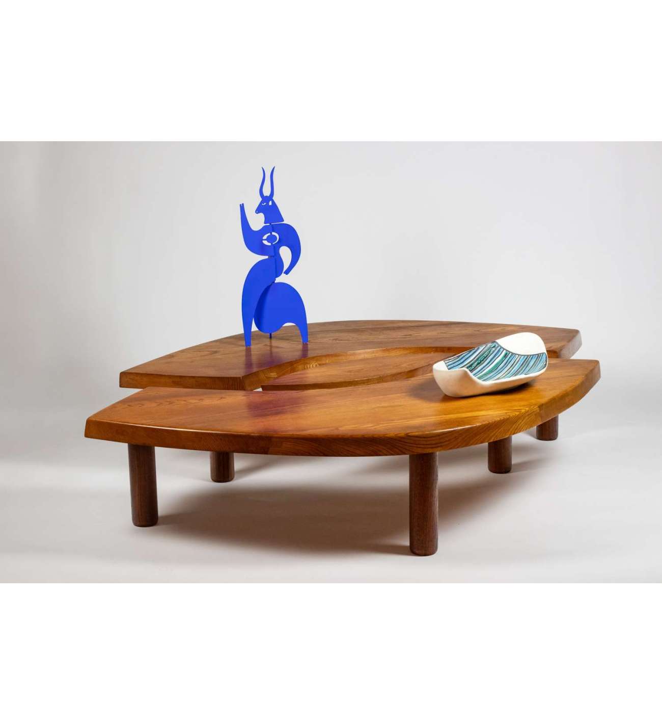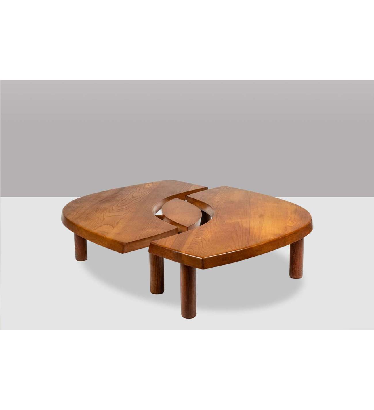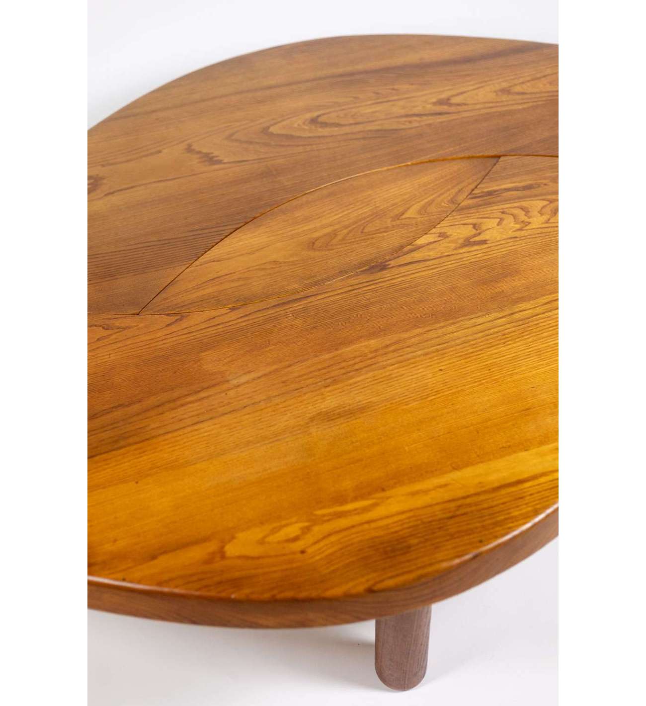 Table basse modèle « T22 C » en orme massif blond et de forme oeil.