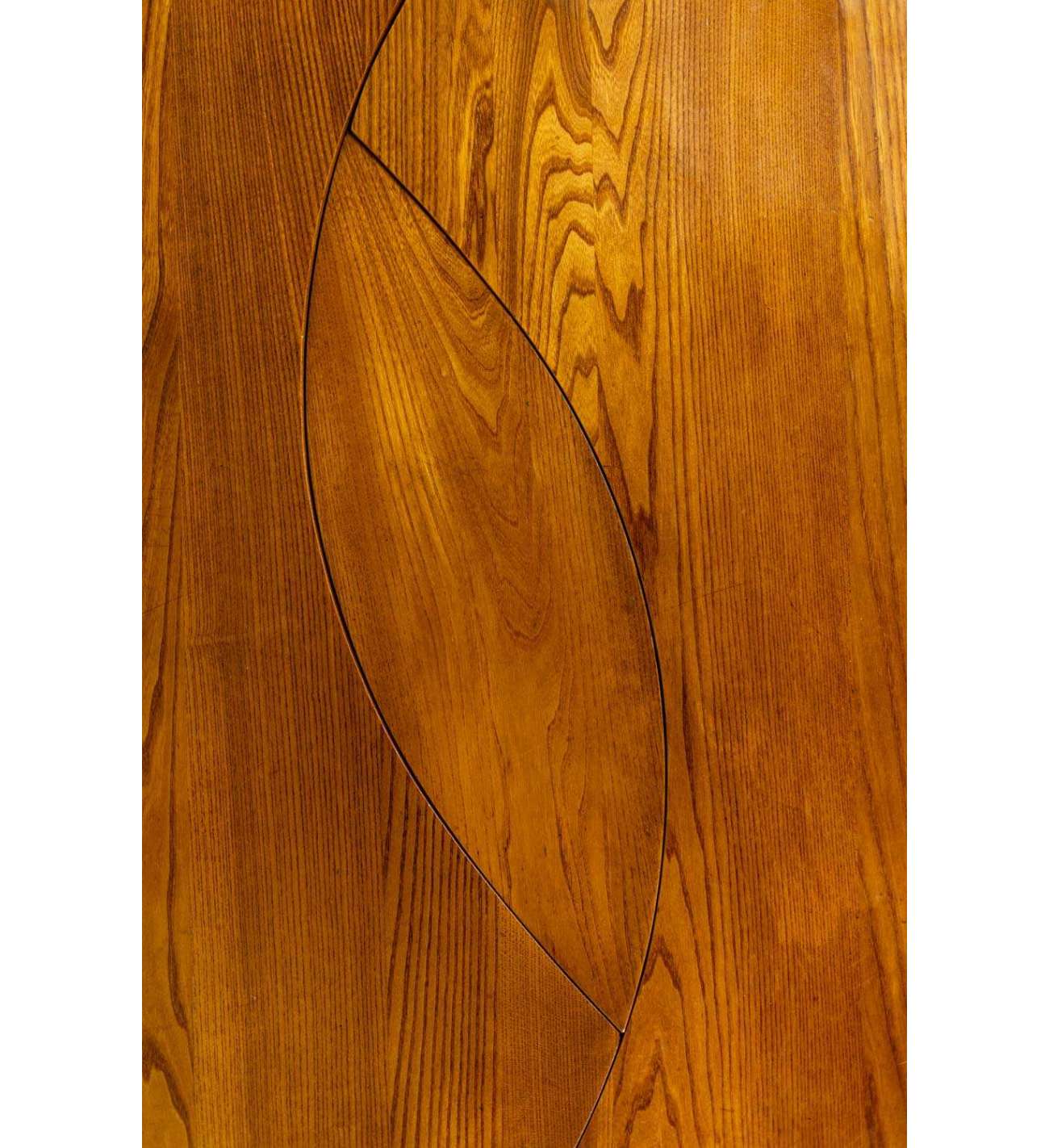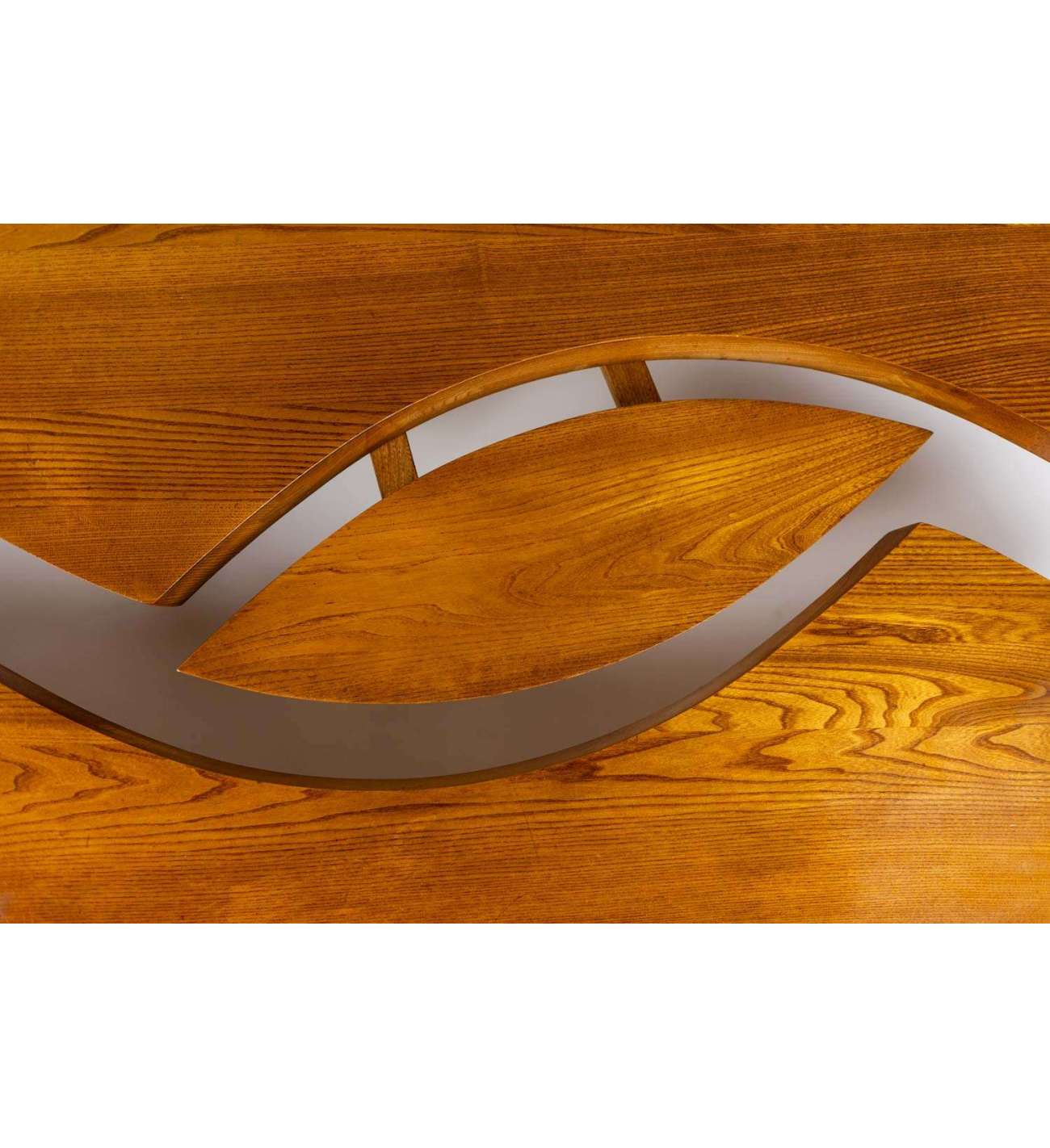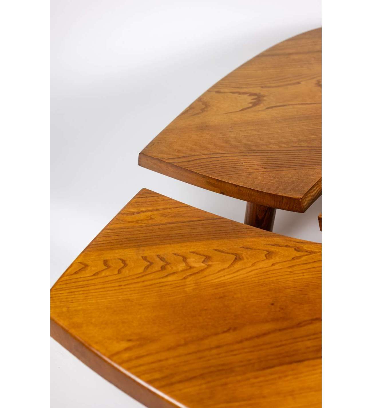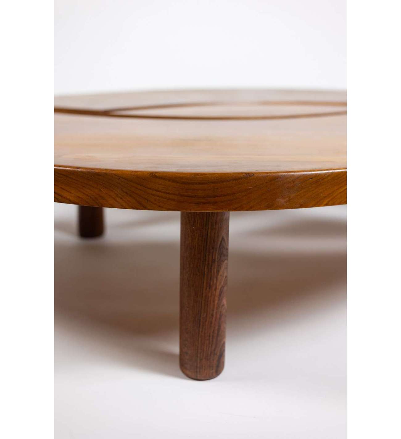 Table basse modèle « T22 C » en orme massif blond et de forme oeil.