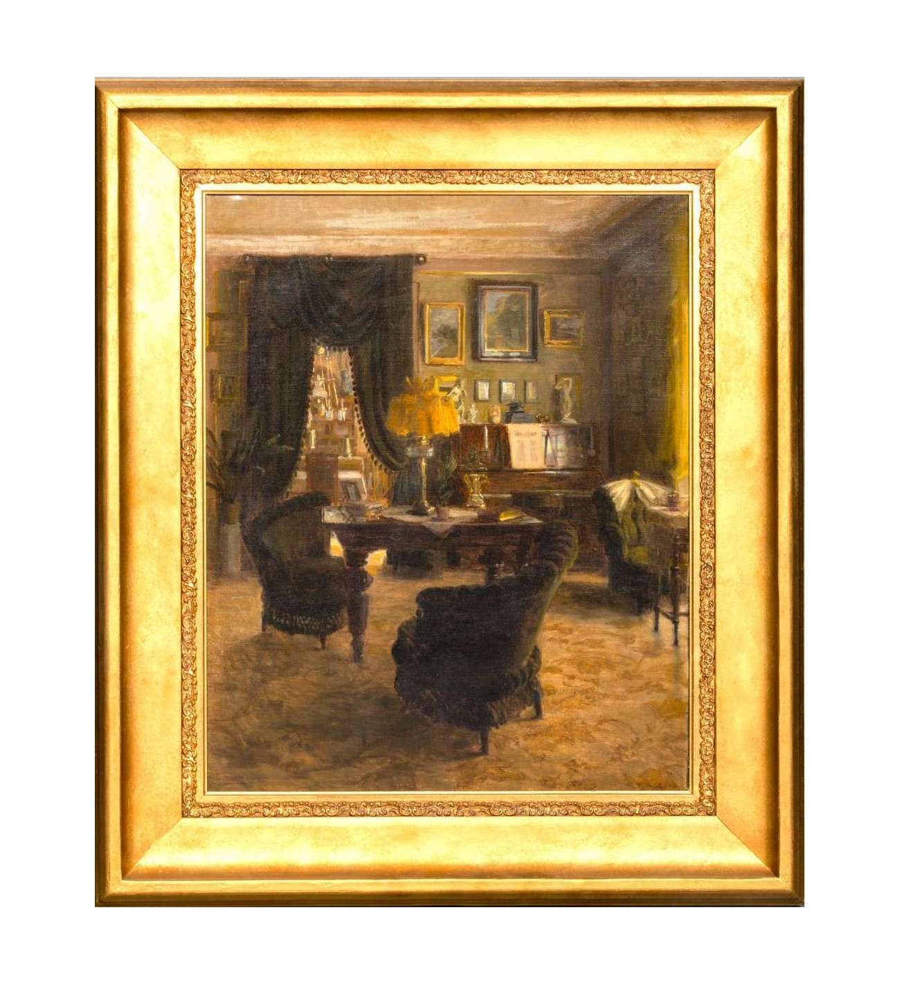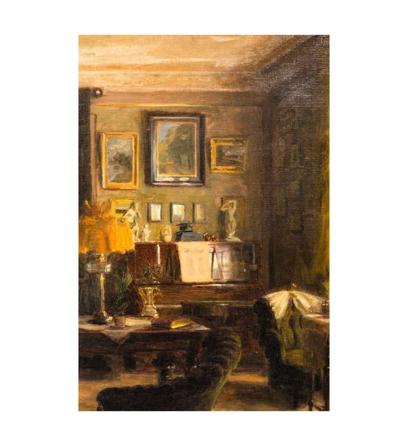 Le tableau de Christian Valdemar Clausen représente une scène d'intérieur intime et confortable, probablement un salon ou une salle de séjour bien meublé.