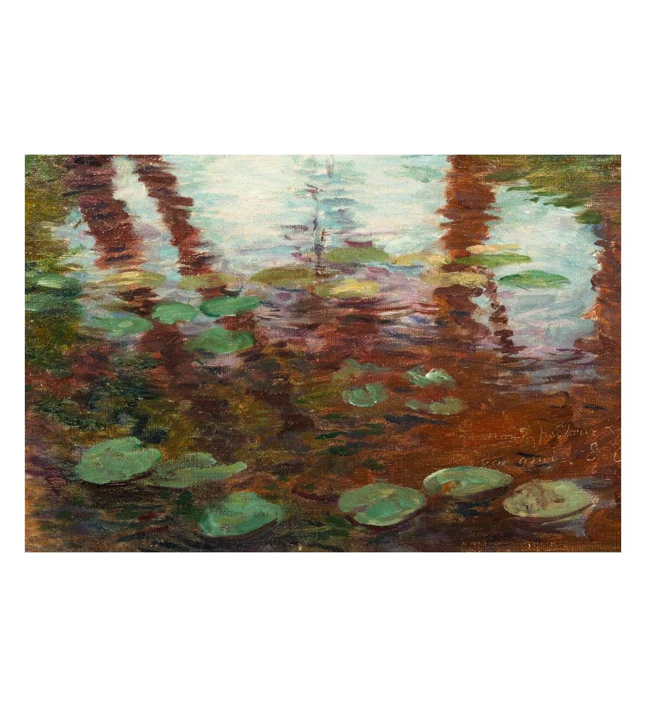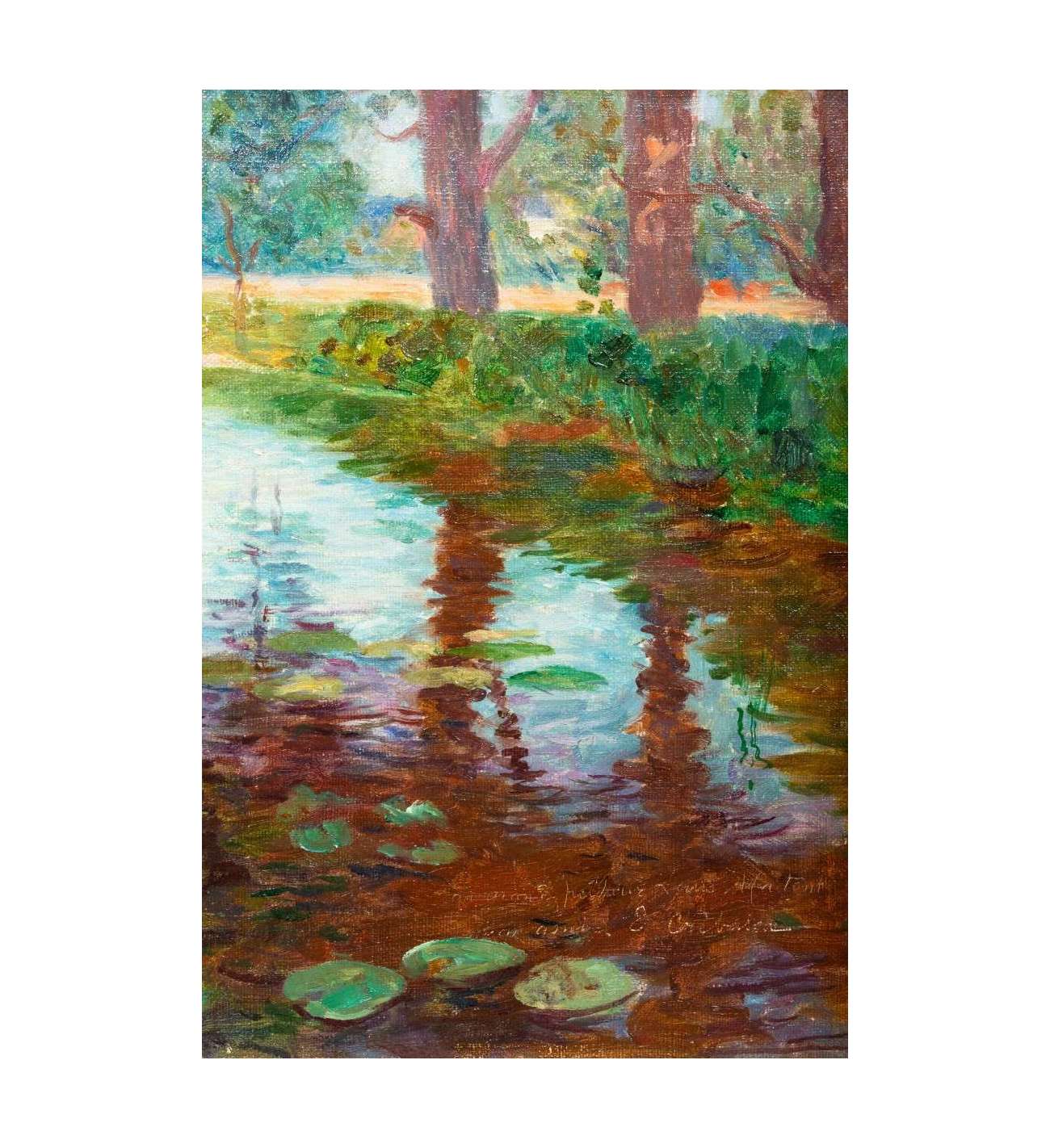 Le tableau de Paul-Édouard Crébassa est un bel exemple de l'art post-impressionniste, mettant en évidence son habileté à combiner l'observation détaillée et les techniques expressives pour saisir la beauté éphémère de la nature. Le tableau invite les spectateurs à apprécier les moments de calme et de réflexion que l'on trouve dans les environnements naturels.
